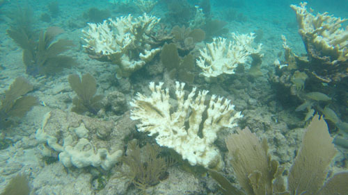Florida Keys: Dr. Lapointe recently completed a 30-year study that shows how increased coral bleaching and diseases at Looe Key is directly correlated with increased freshwater flows and nitrogen loading coming from the Everglades. High nitrogen levels combined with relatively low phosphorus in the water at Looe Key leads to phosphorus starvation in the corals and metabolic stress.